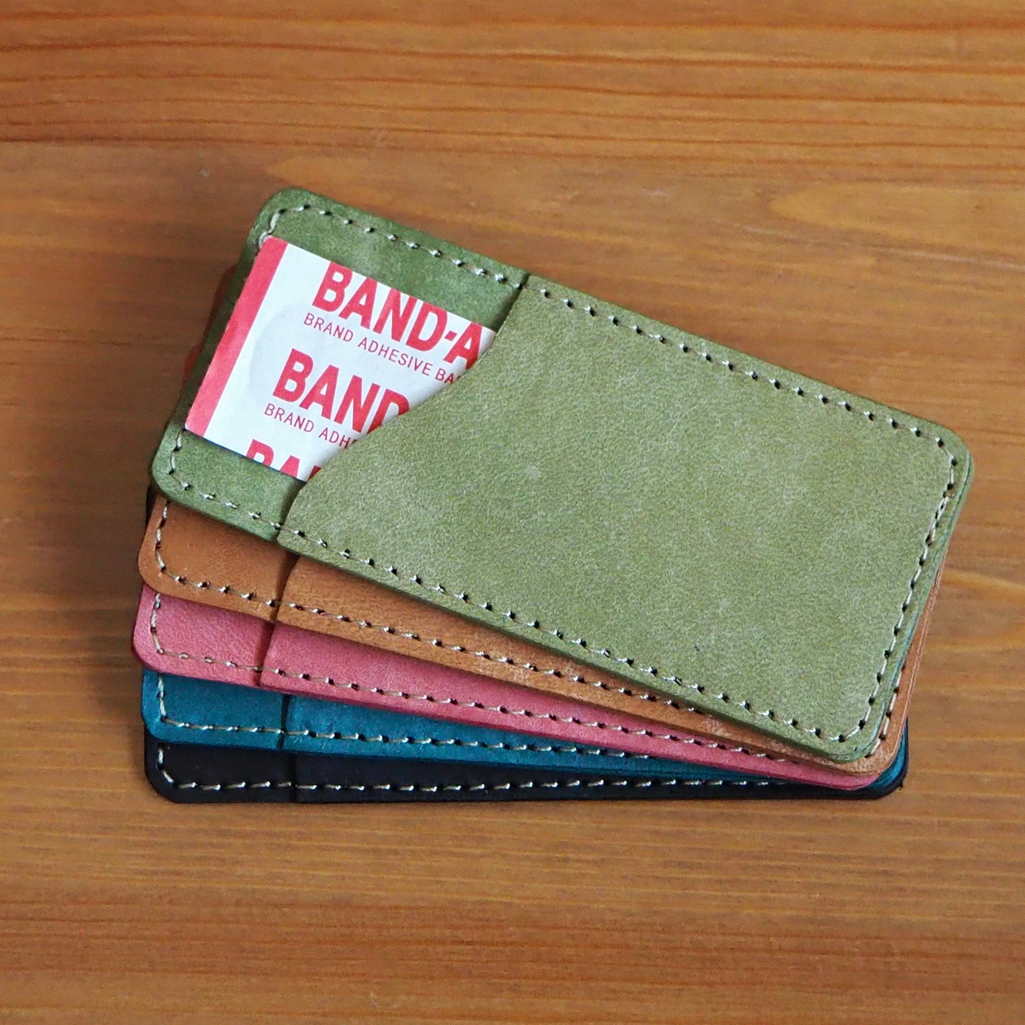 シンプルで高級感のあるデザインが特徴のバンドエイドケースです。丈夫な革素材を使用しておりますので、市販のケースより長くお使いできます。また、他の革製品と同様に使うほどに手に馴染んでいきます。