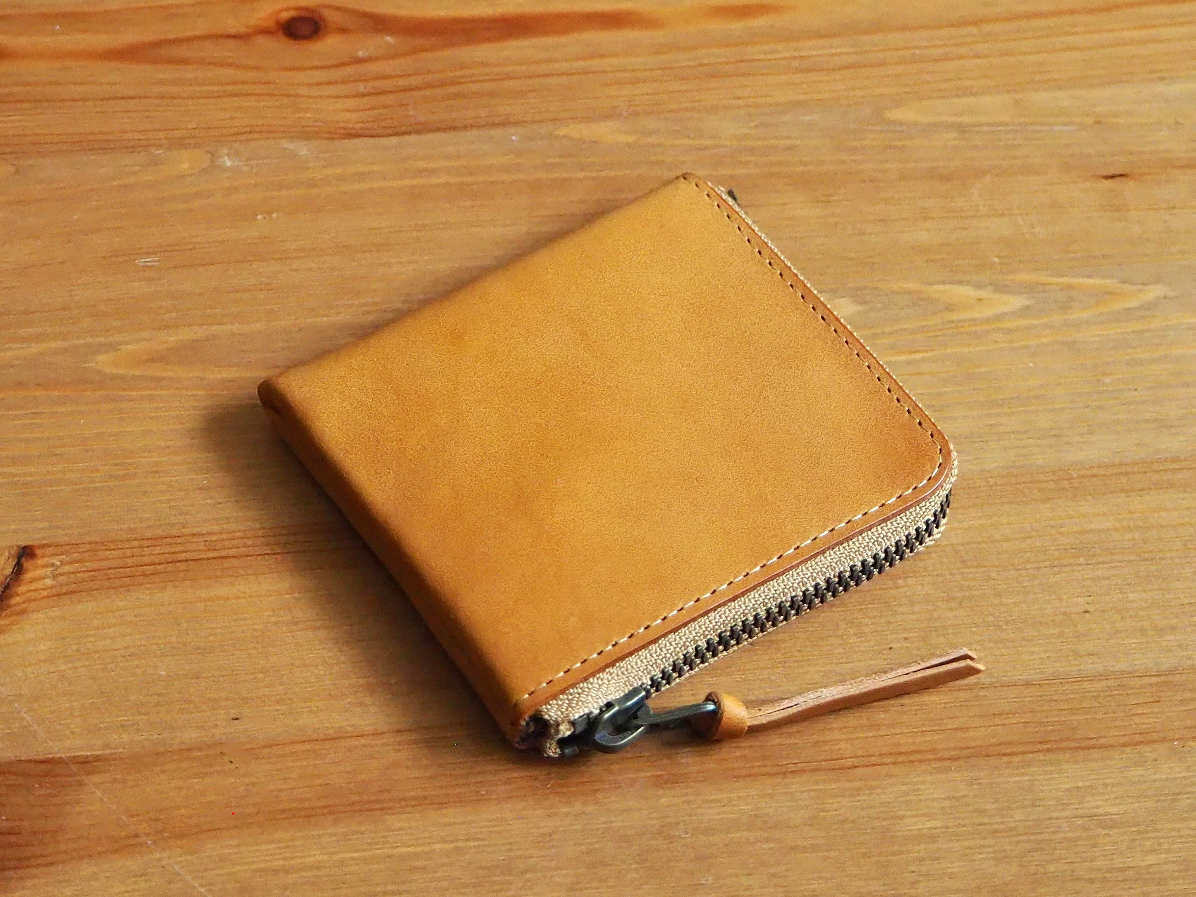 イタリアンレザー 牛革 L字ファスナー 財布 ミニ (キャメル)