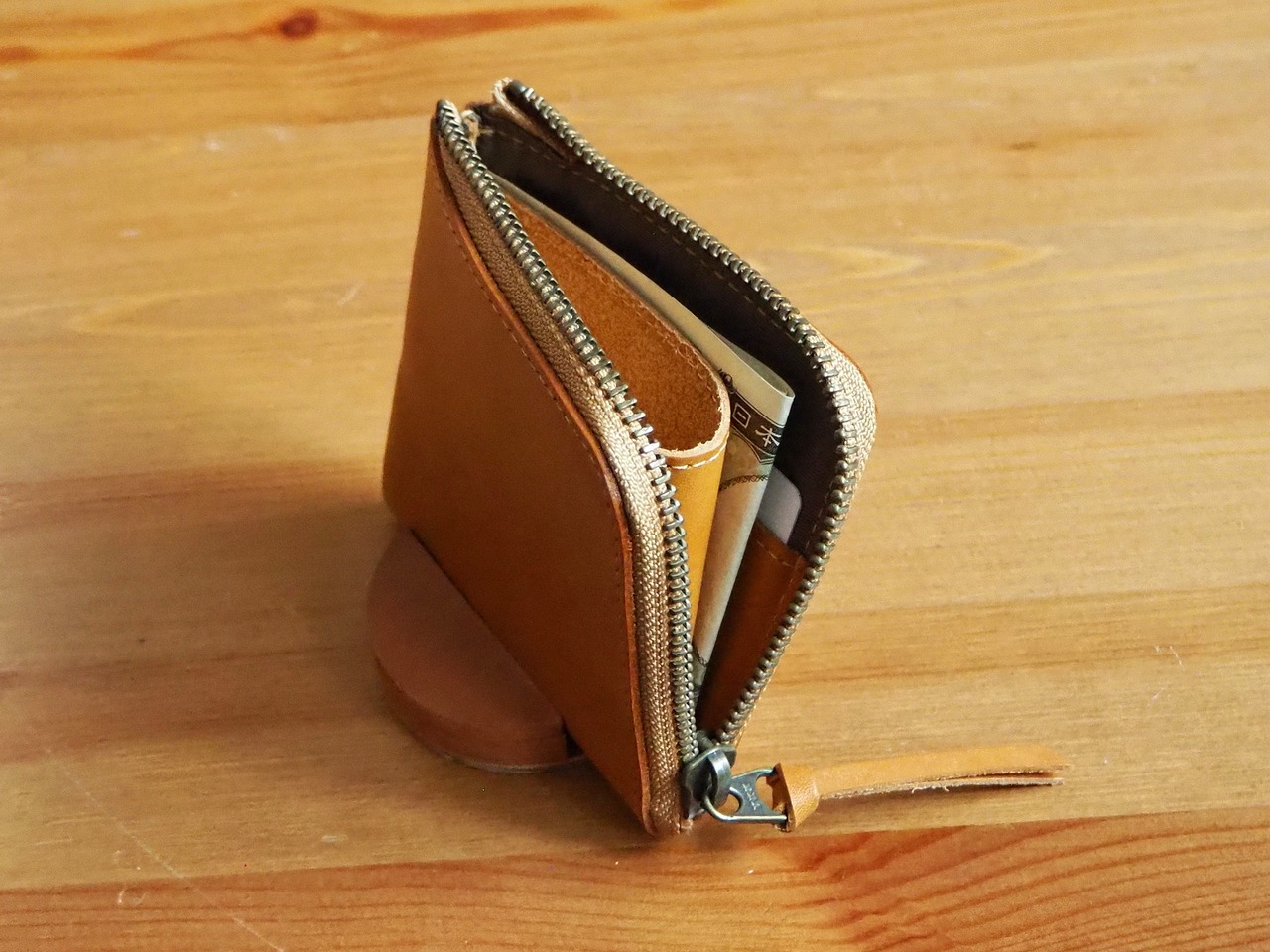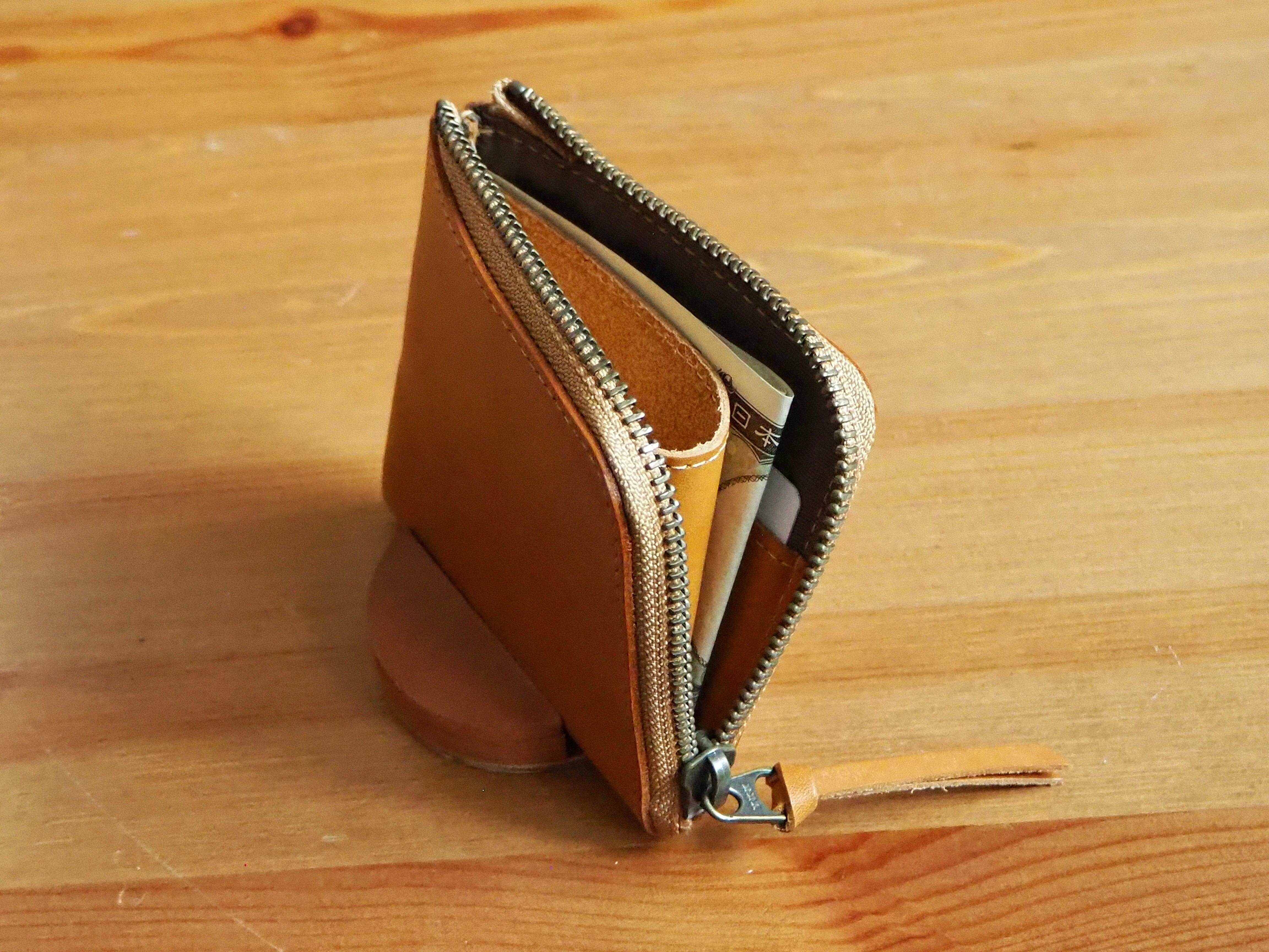 ミニサイズのL字ファスナー財布です。コンパクトな見た目ですが、お札、小銭、カードがしっかり入ります。カードポケットはスッキリと両側1段ずつにしてますが、1つのポケットに2〜3枚入れることができます。