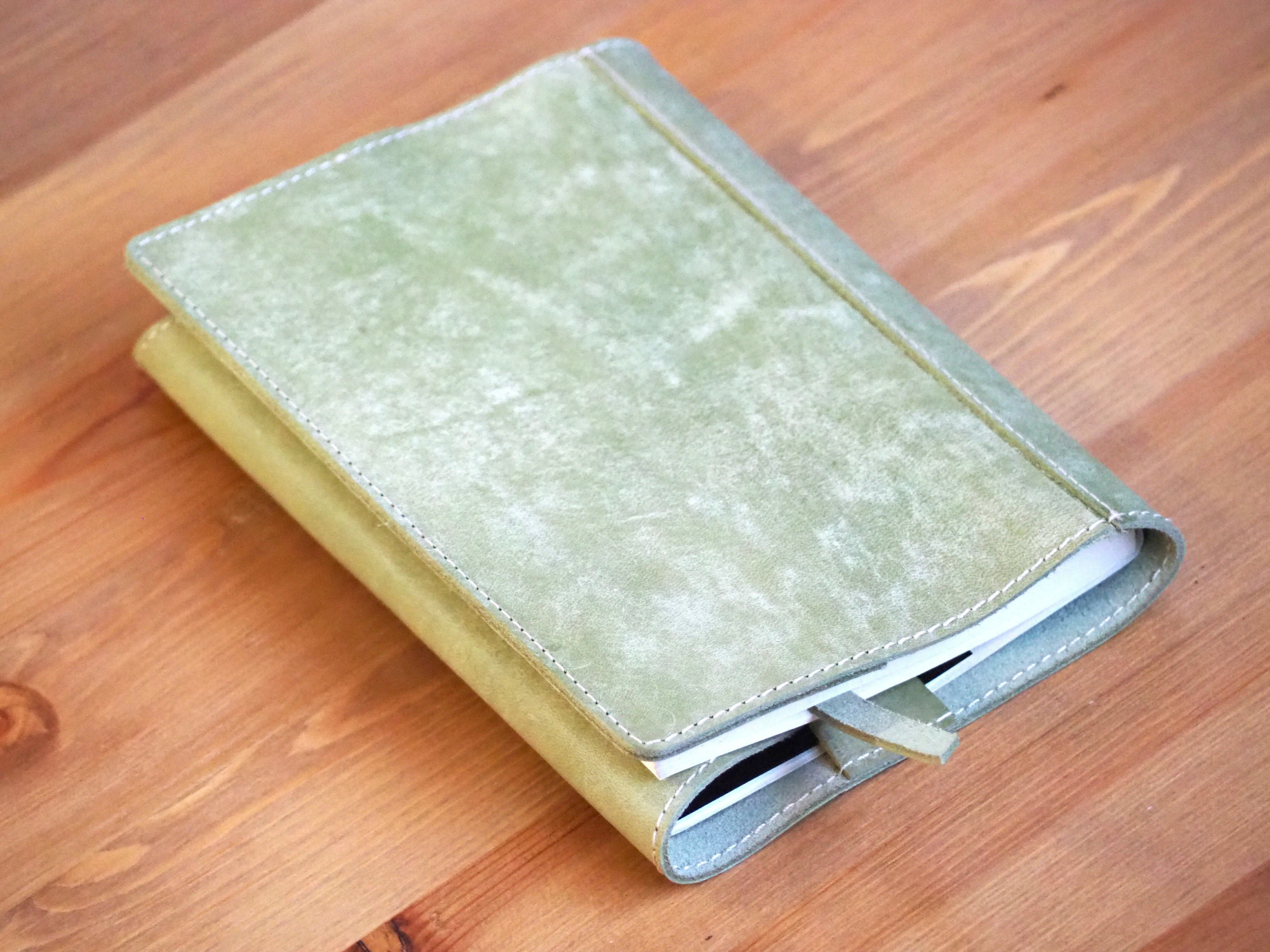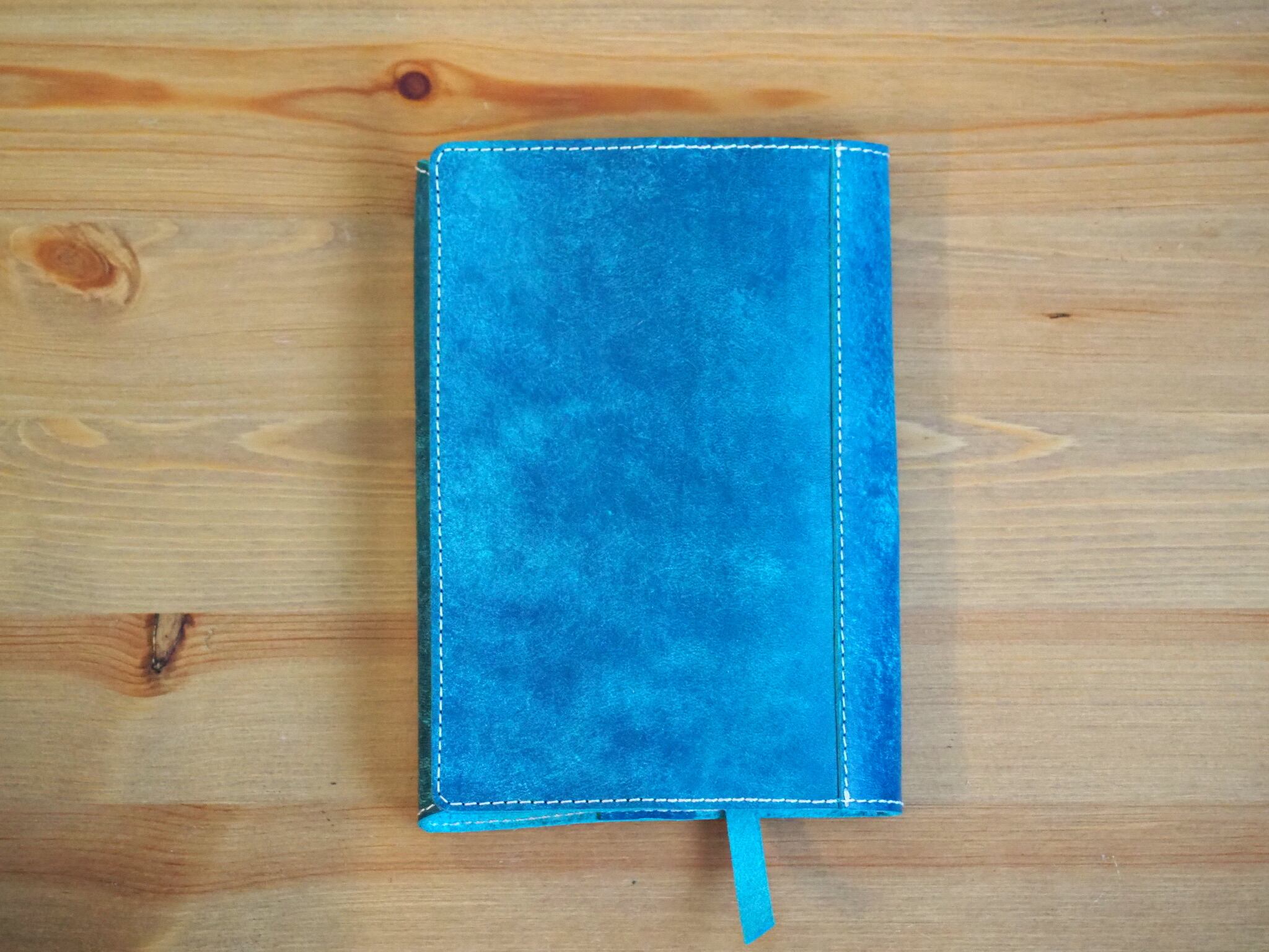 発色の良いイタリアンレザーを使用したブックカバーになります。表面を毛羽立たせており、マットでザラザラした質感が特徴の革です。オイルが入った革ですので経年変化が早く、色が濃くなりツヤが増していきます。