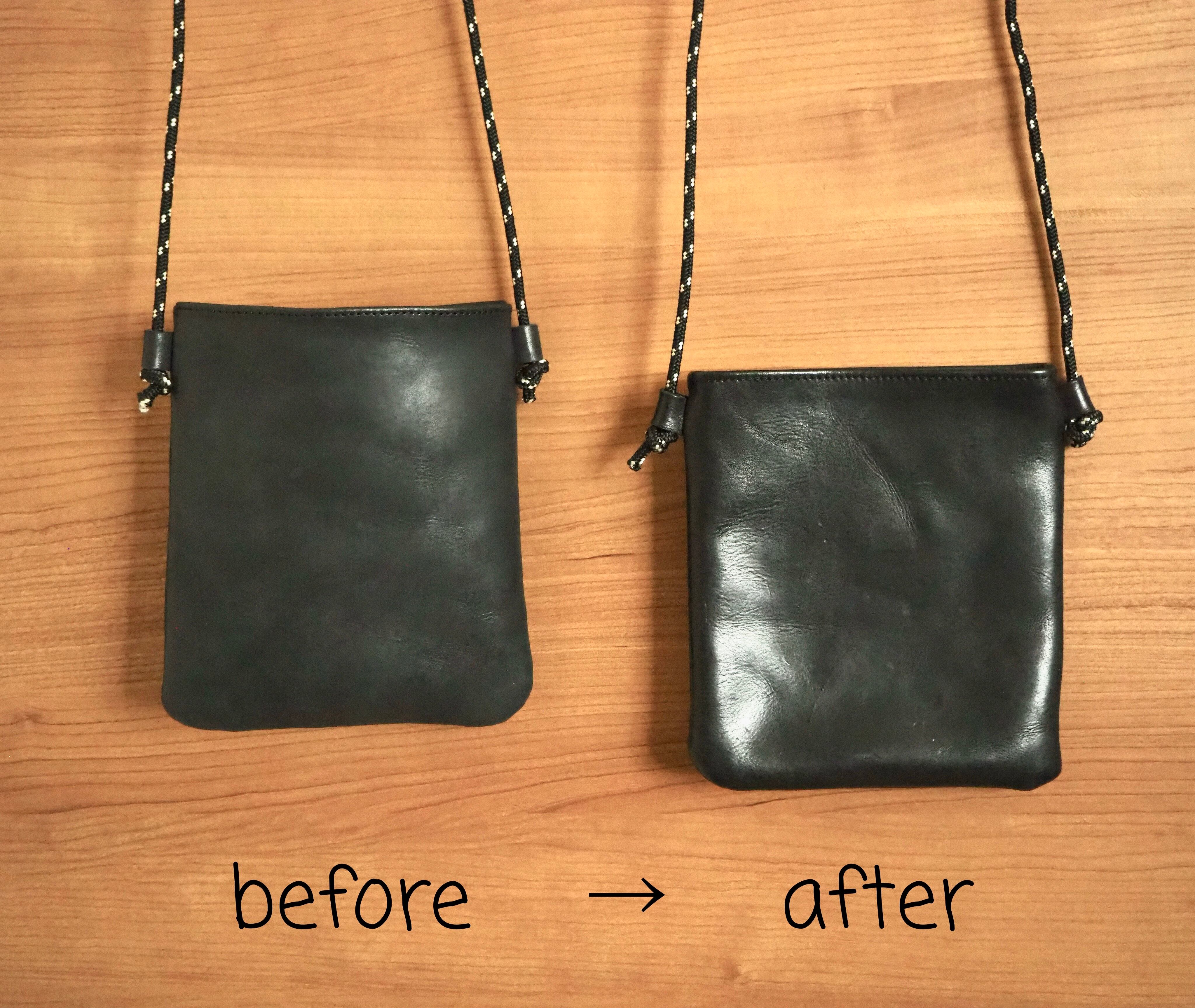 タンニンなめしの革にワックスが塗り込んであるので、使用後はツヤツヤになっていきます。