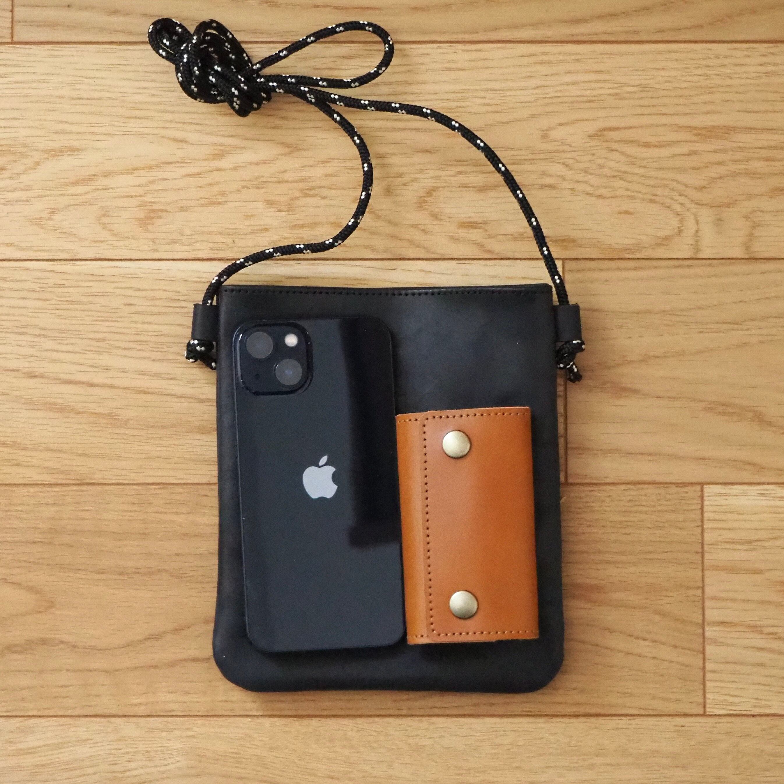 国産牛革 ミニショルダー スマホポシェット ブラック