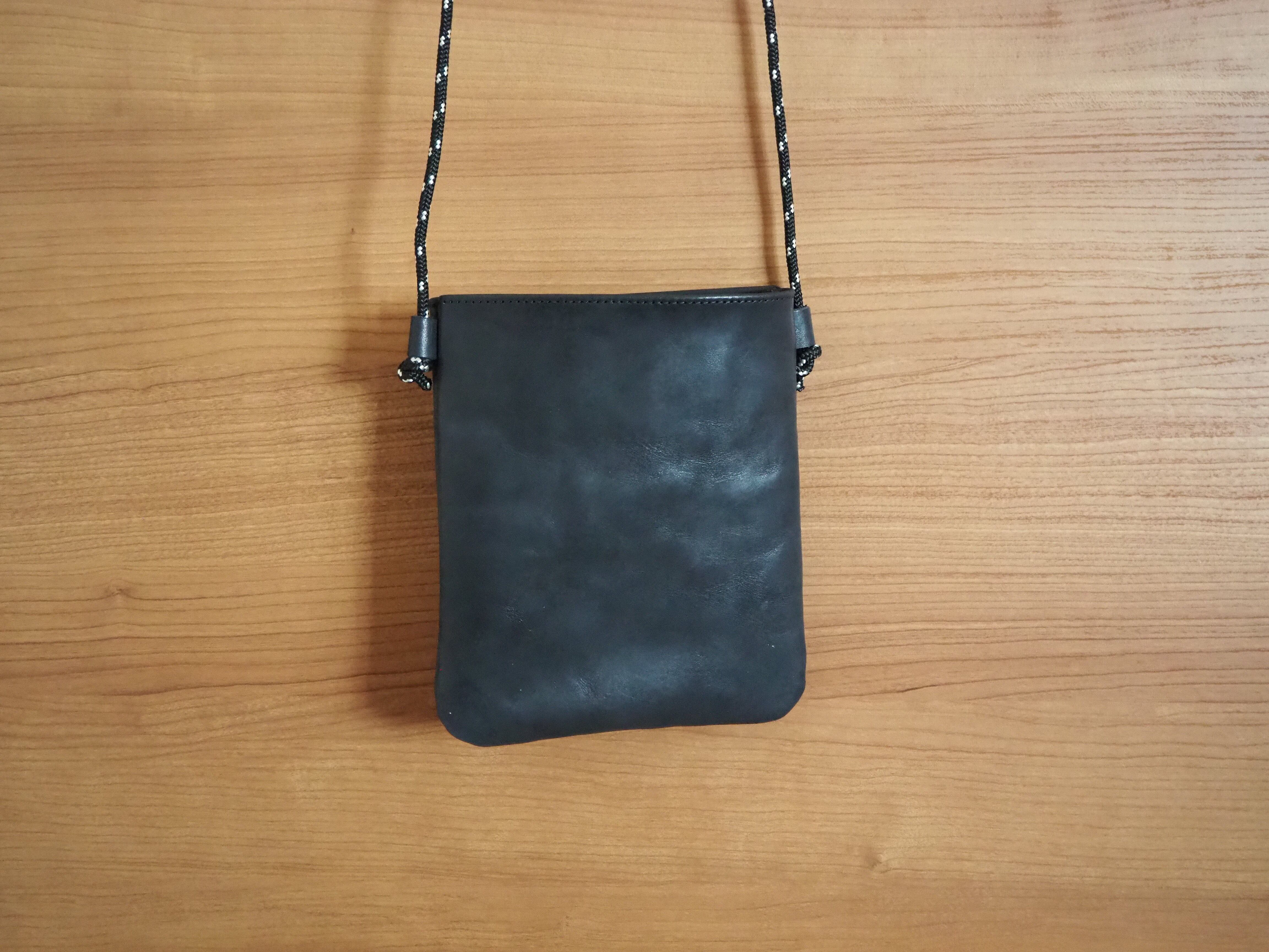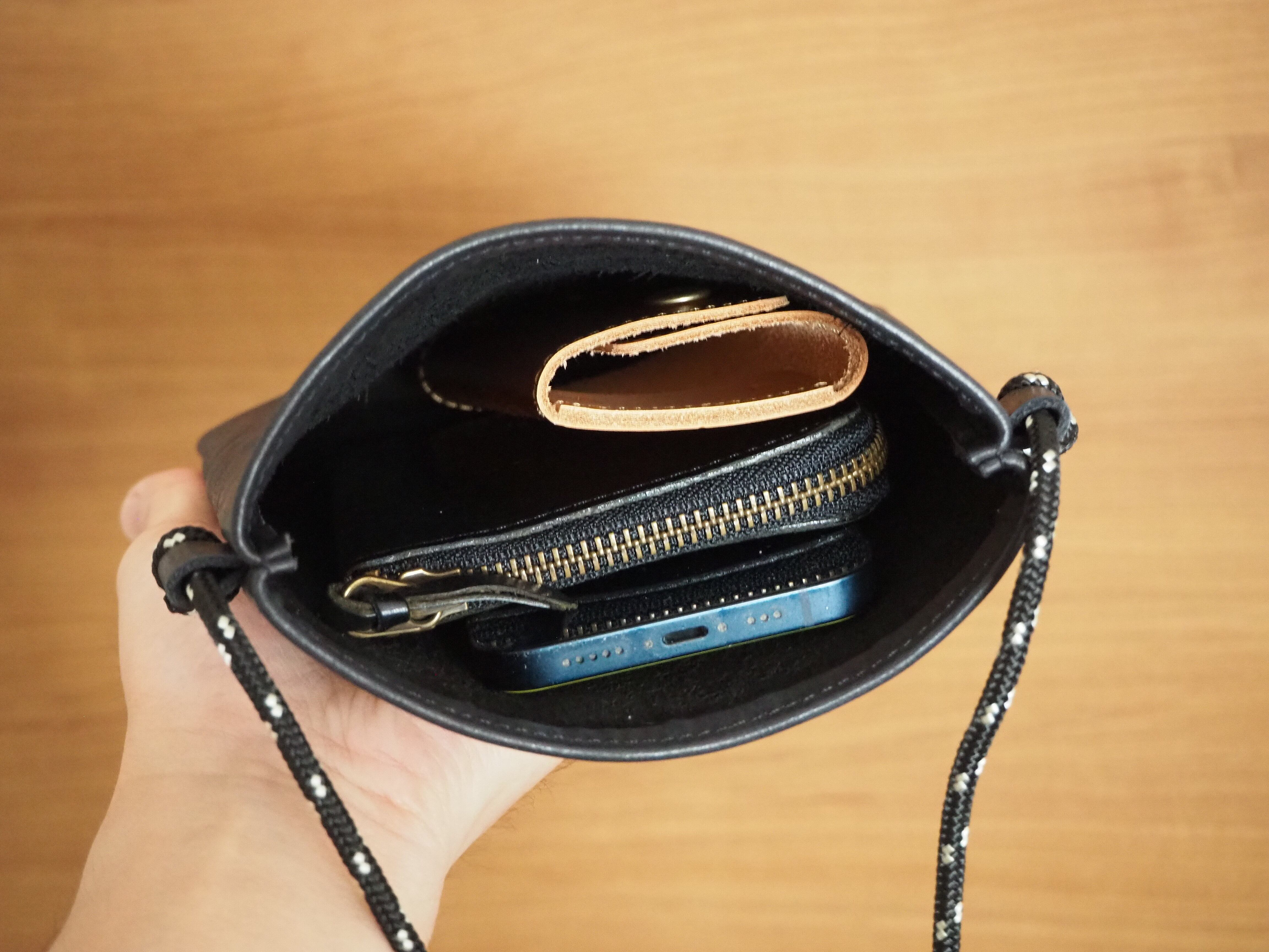 柔らかい国産の牛革を使用したバッグです。スマホポシェットより若干大きいサイズ感にしている為、スマホ+小さいお財布なども一緒に入れられます。