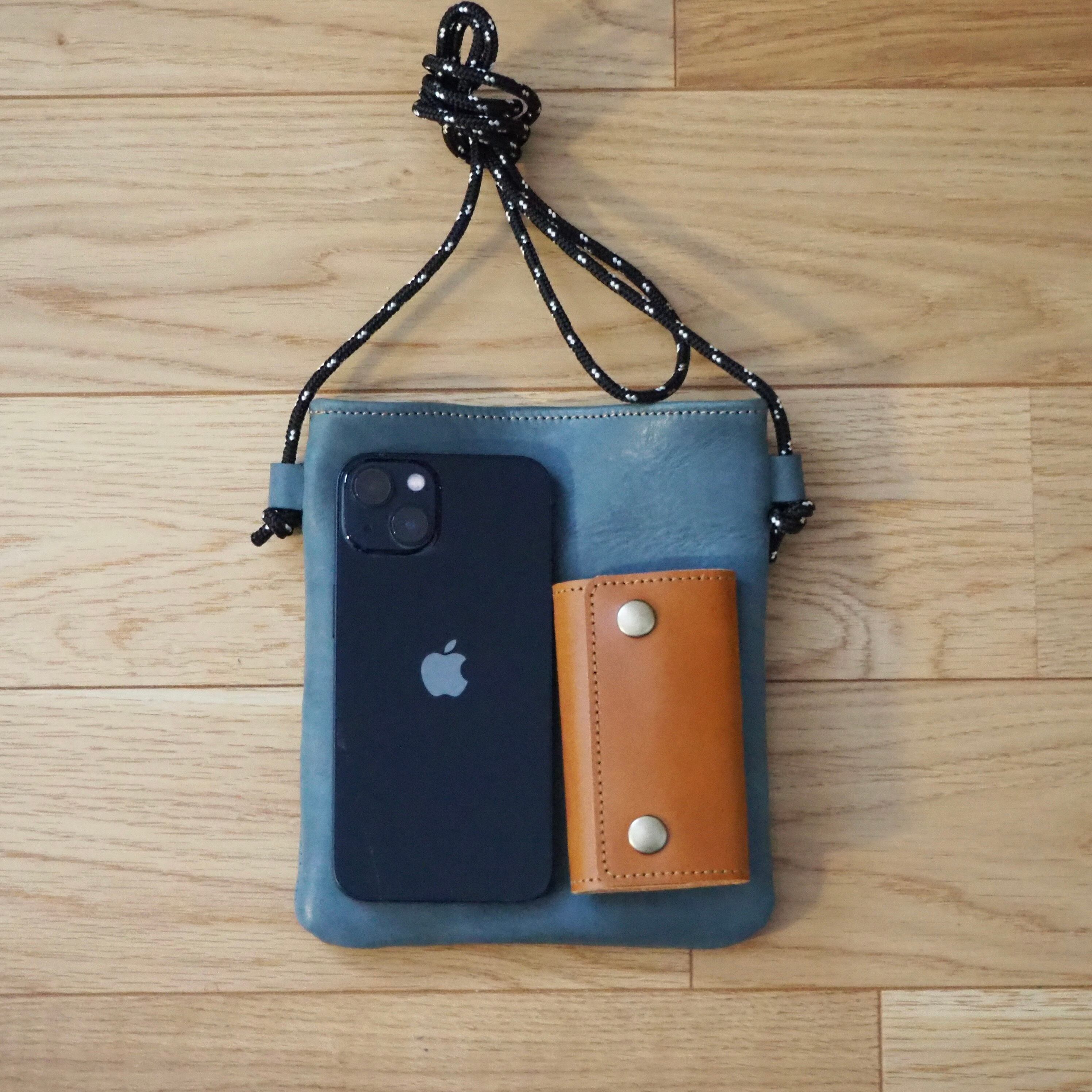 国産牛革 ミニショルダー スマホポシェット ブルー