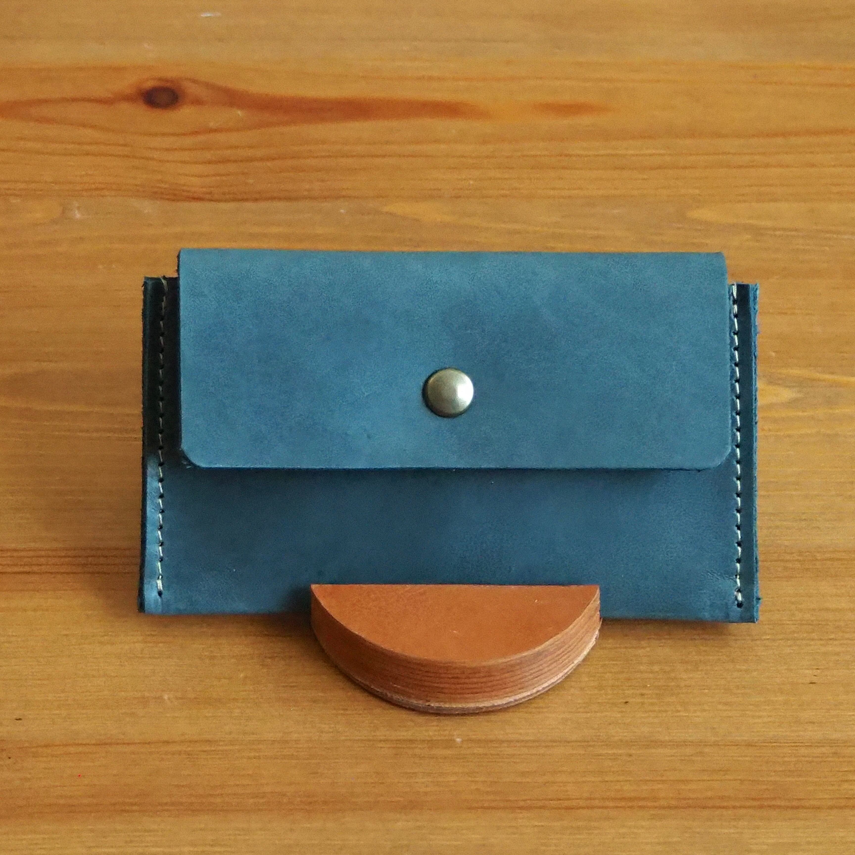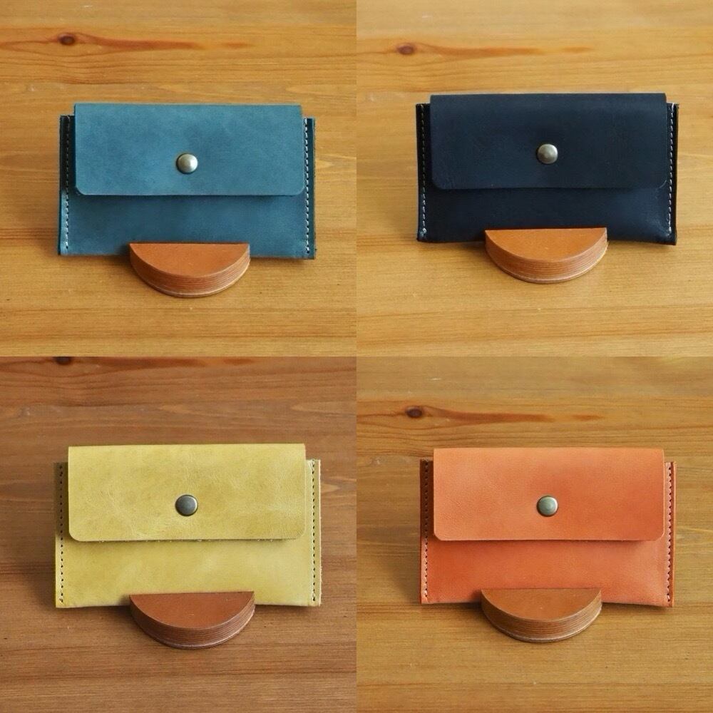 かぶせにホックを付けてますので、名刺入れ、カードケース、小銭入れとマルチにお使い出来ます。メンズ、レディースともにお使いできるデザインになります。
