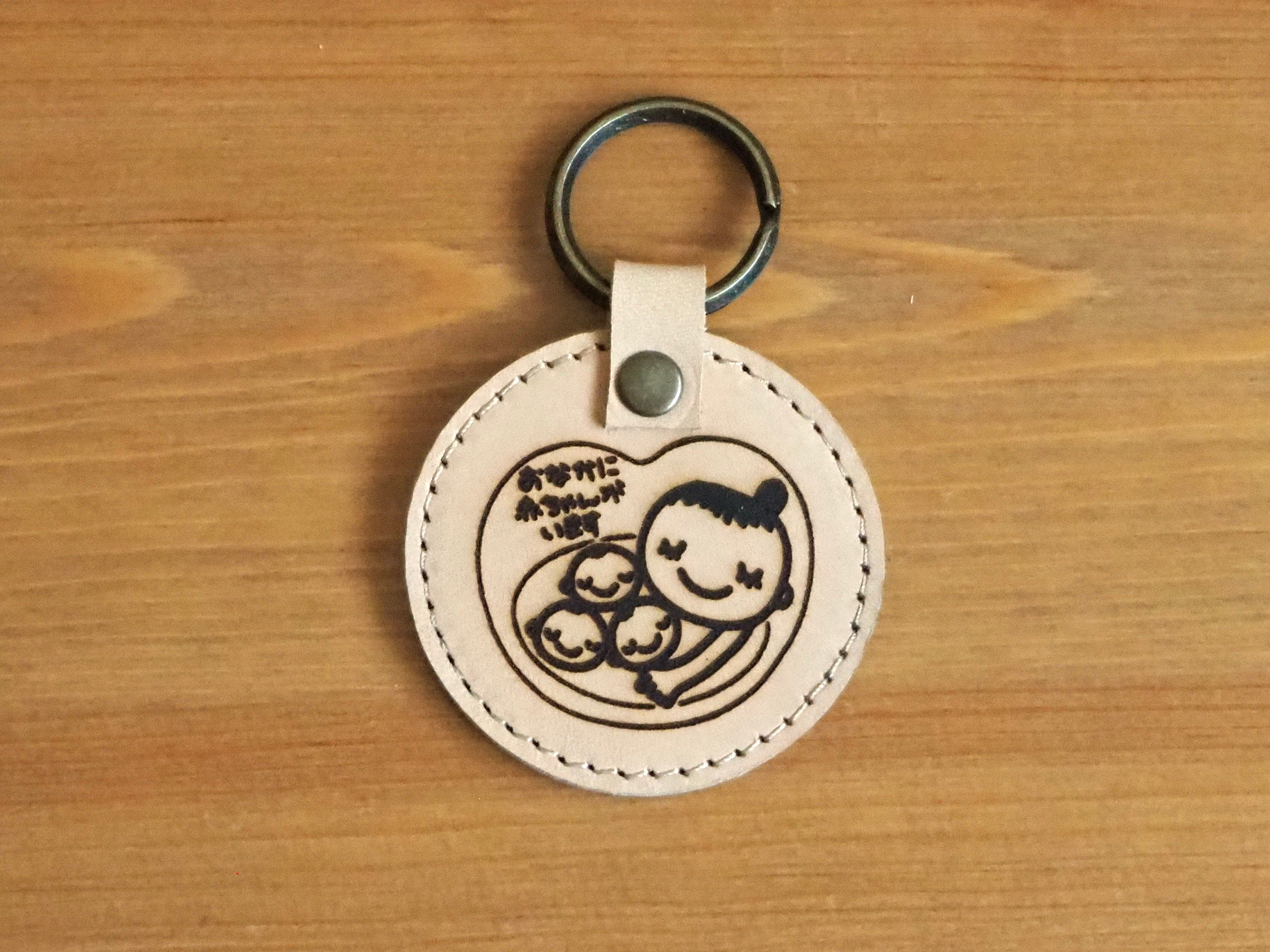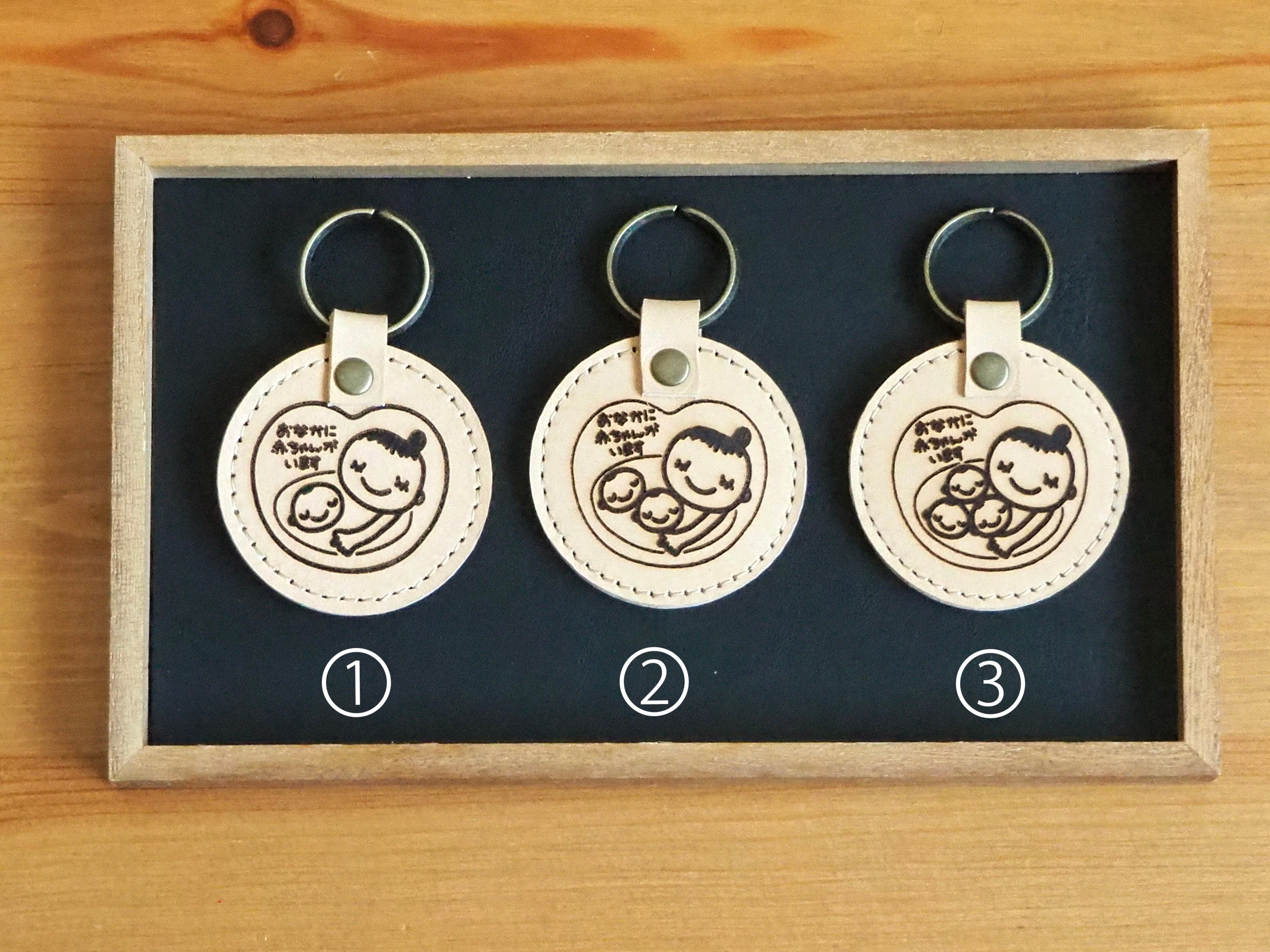 染色していない生成りのイタリアンレザーを使用したマタニティマークです。出来るだけシンプルでナチュラル感のある素材を選びました。